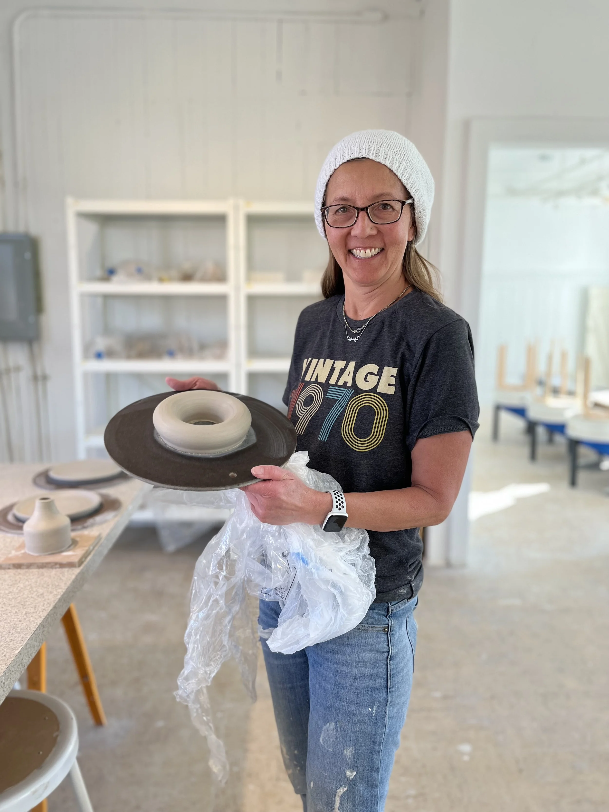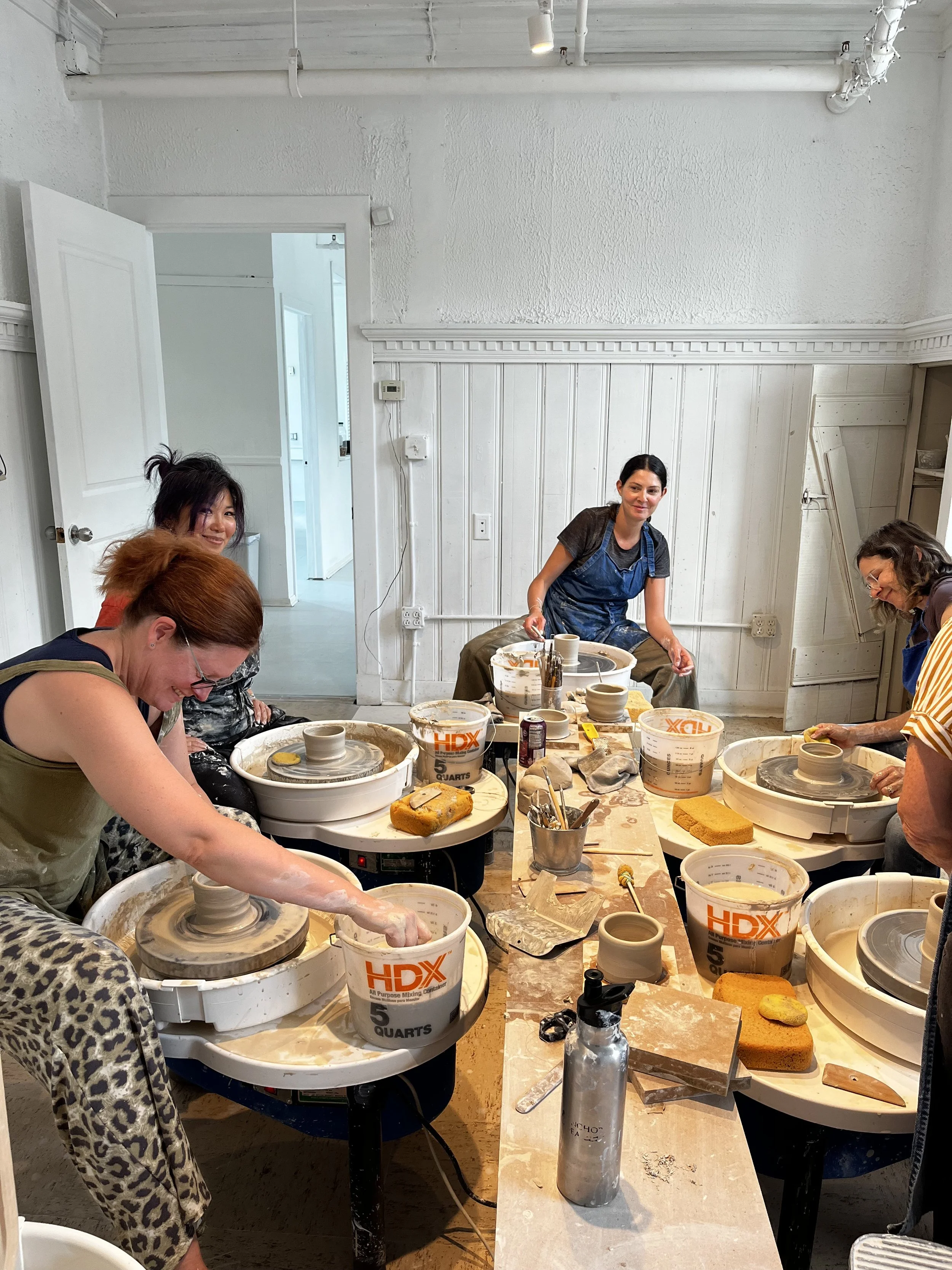 First Friday is a try class in throwing on the pottery wheel that is offered at Rock Clay on the first Friday of every month. In this class, you will learn the basics of throwing on the pottery wheel: wedging the clay, centering your clay on the wheel, and shaping a simple lump of clay into a pot.